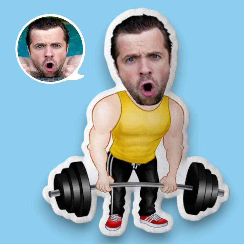Dodaj fotografiju nečijeg lica, a mi ćemo sašiti jastuk u obliku bildera i sa likom te osobe. 🏋️‍♂️